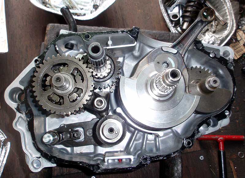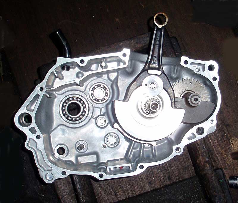 クランクセンター出ししたクランクとバランサーをLケースに挿入