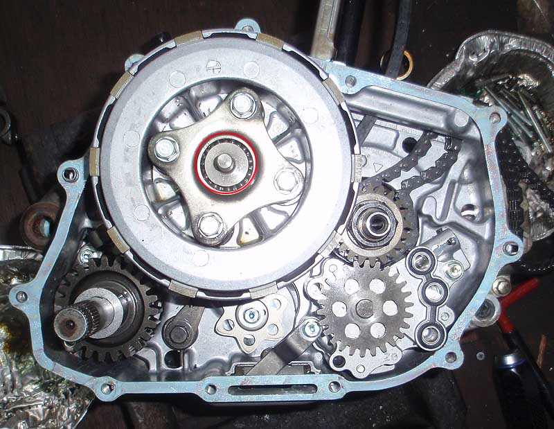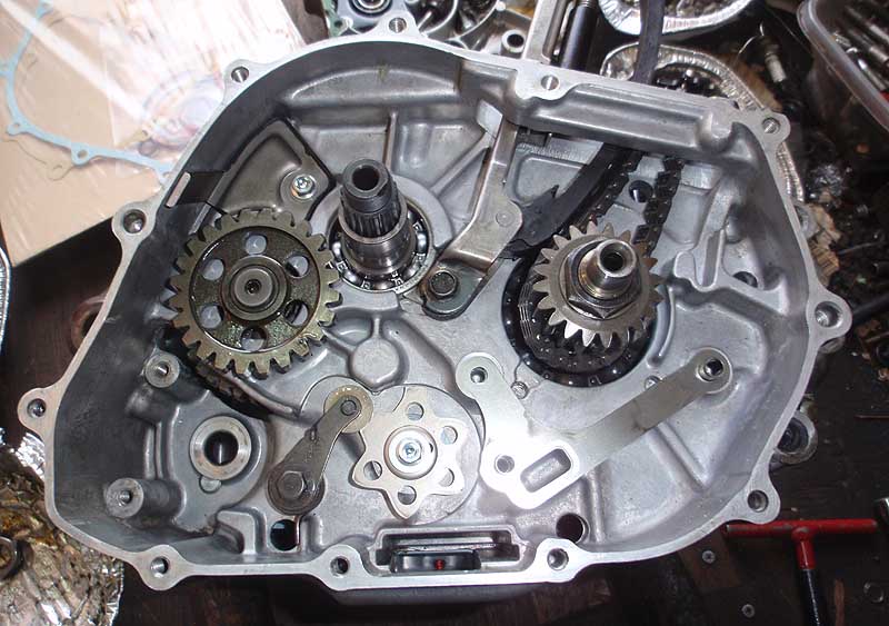 クランクの延長上のパーツ 強化カムチェーン、テンショナー、クラッチハウジングブッシュ、