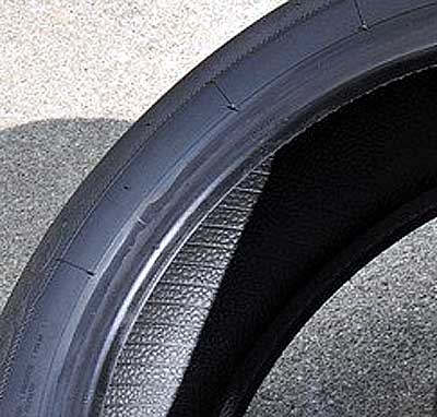 最近のタイヤはリムが隠れるような造りが主流となっている。