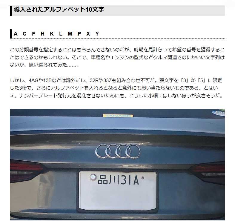 最近 息子と話をしているとクルマのナンバーの話になった。