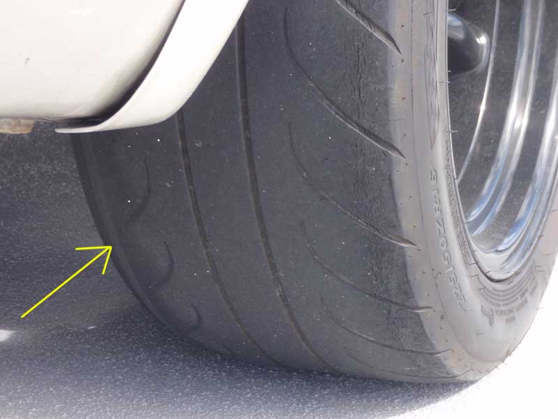 リアタイヤが片減りをしていて カーカスが出そうになっている。