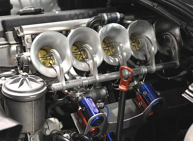 これ等の目的は燃焼室に入るまで 混合気がなるべく細かい霧化状態にする意味合いがあると思われる。